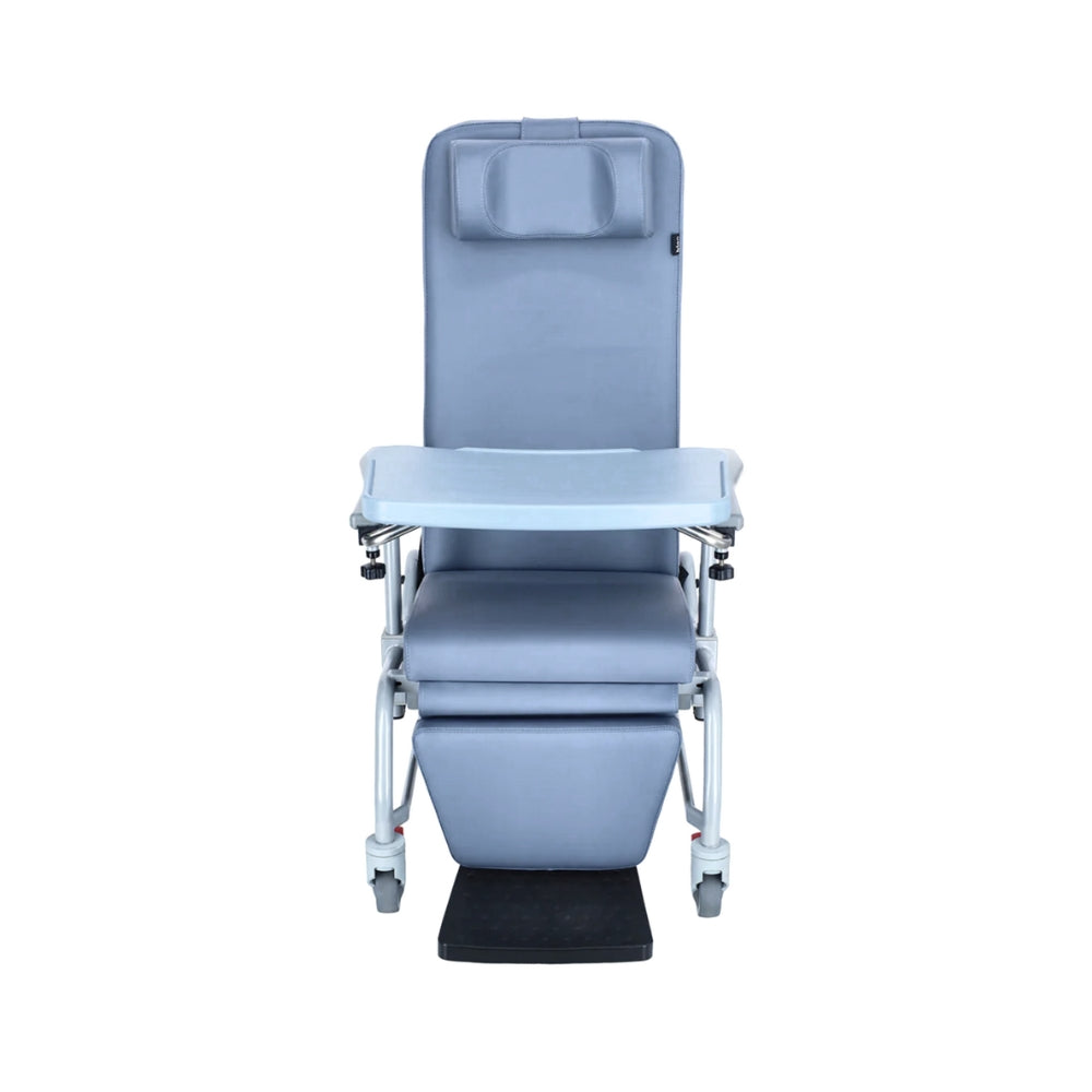 The geriatric chair reclines beyond 150°, allowing users to nap comfortably whenever they wish. Thoughtfully designed for convenience, it includes a stowable meal tray, ensuring a clutter-free space when not in use.