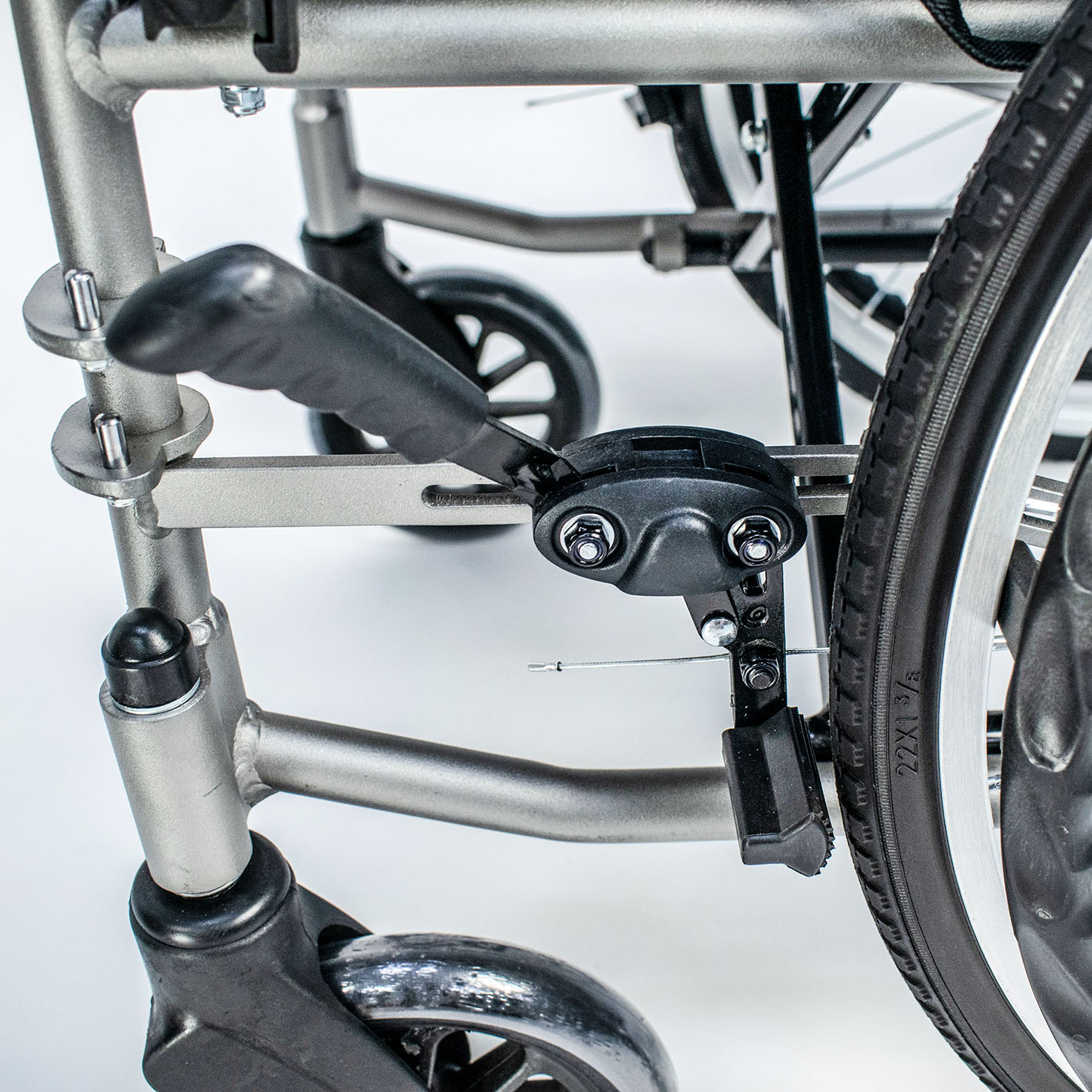 A foldable backrest allows the wheelchair to become more compact, making transportation easier, especially when traveling by car or public transport. This feature helps caregivers and users participate more easily in daily activities and travel to various locations.