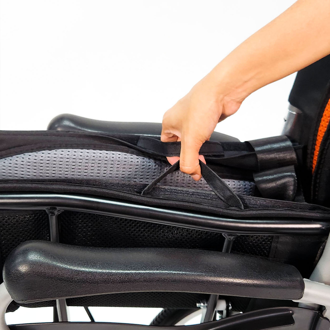 The wheelchair has a foldable backrest, allowing it to fold into a compact size for easy storage and transportation. This feature enables caregivers and users to engage more easily in daily activities and travel to various destinations.