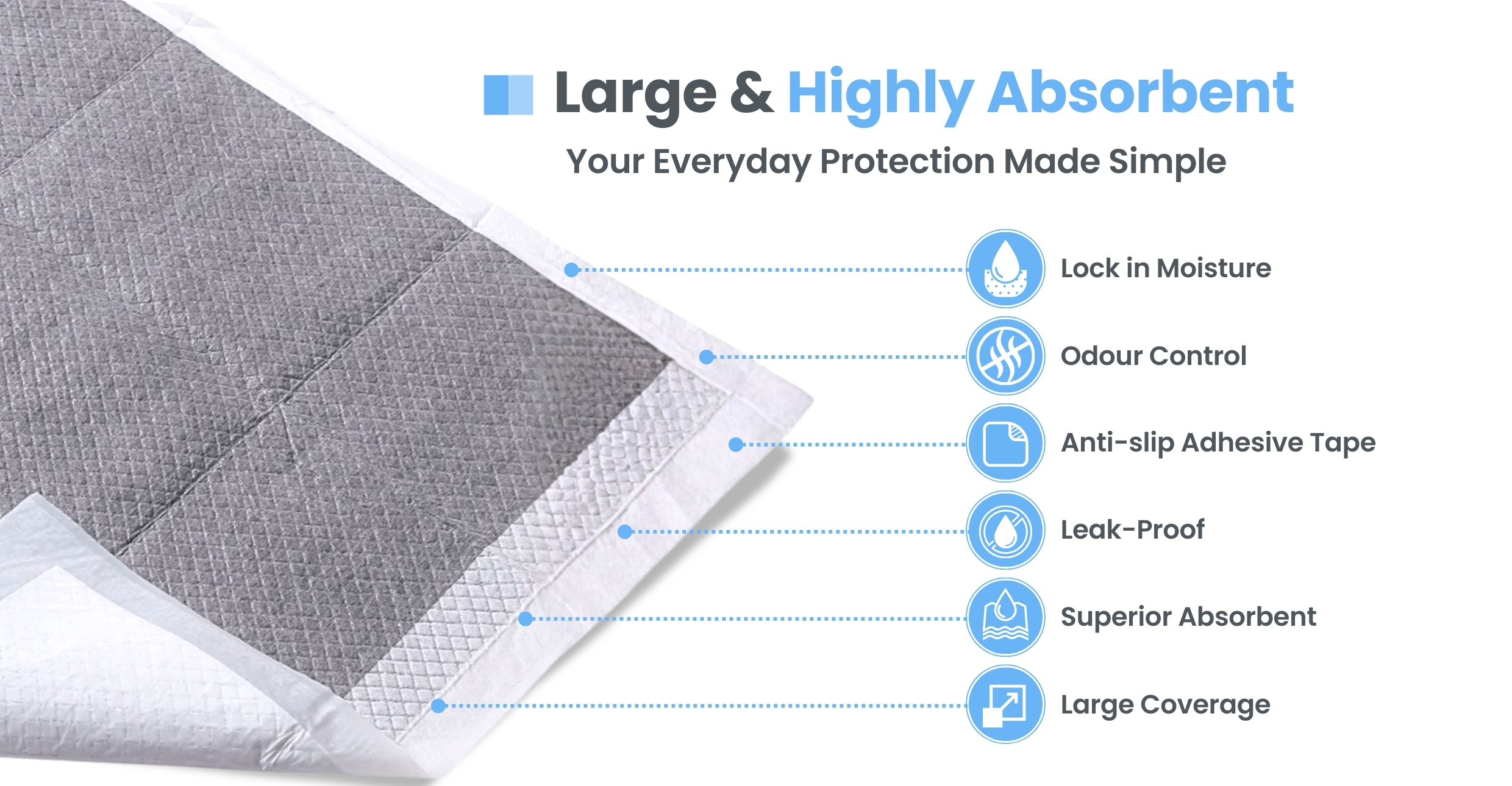 The durable polyethylene (PE) film backing acts as a waterproof barrier, preventing any liquid from leaking through the underpad.