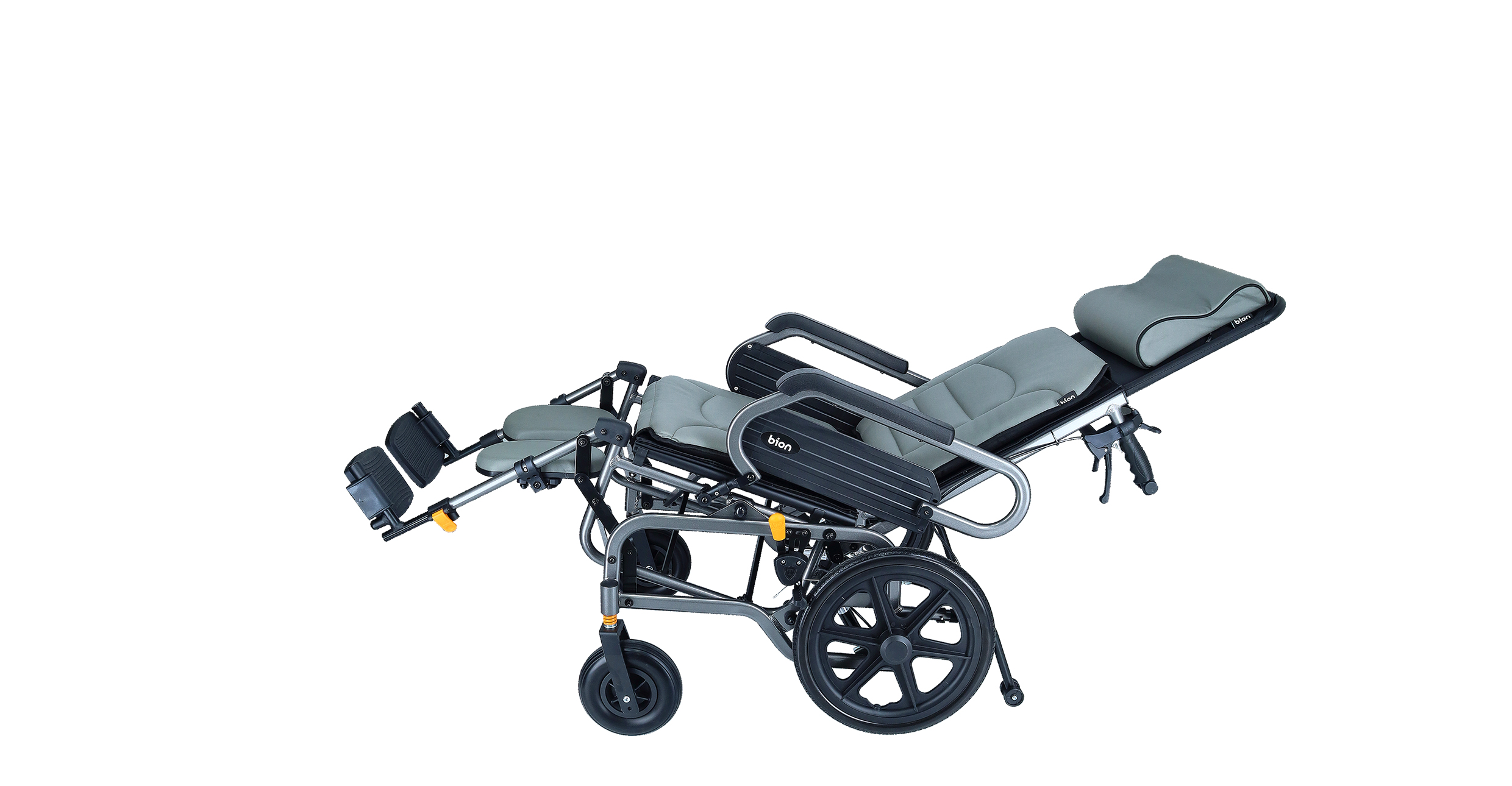 The Bion Recliner Pushchair G810 is part of our Recliner Series, thoughtfully designed for patients with limited mobility, ideal for long-term comfort. Its reclining and tilt-in-space functions relieve and evenly distribute weight for a truly relaxed experience. The footrest and armrest adjust in harmony with the angle, providing posture support and ease in every recline. Finished with a luxurious breathable leatherette that wicks away heat, and keeps the user cool and refreshed.