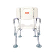 The height adjustable legs of the shower chair can be tailored to fit the user's height and needs.
